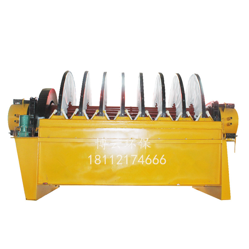 PG系列盤式真空過濾機(jī) (1)扇形濾板脫水孔分布均勻,孔率合理,筋條尺寸大,由高強(qiáng)度工程塑料制成,壽命提高了2-3倍。 (2)濾液管過濾數(shù)面大,分配頭腹腔容積大,提高了抽氣率和濾液排放效果。 (3)耐磨錦綸、單或復(fù)絲濾布使脫餅率高且不易堵塞,使用壽命長。 (4)多點(diǎn)干油泵集中多點(diǎn)自動潤滑。 (5)濾布自動清洗裝置,保持了其良好的脫水效果。 (6)臥式強(qiáng)制高速攪拌、軸端采用橡膠及石墨盤根和水壓差三重密封不漏漿。 (7)主傳動無級變速,依物料的濃度及流量調(diào)節(jié)(交流調(diào)速電機(jī)或變頻器),以求達(dá)到理想的工作效果 。 (8)每盤由20片扇形板組成,加強(qiáng)了過濾過程控制,成餅厚度均勻。 (9)磨擦片采用特制耐磨硼鑄鐵,剛?cè)嵯酀?jì)密封佳,使用壽命達(dá)到十年以上。 (10)濾液管為高強(qiáng)度耐磨陶瓷復(fù)合鋼管,提高壽命10倍以上。 (11)濾液管與濾扇接口去掉下法蘭,采取模具定位直接焊接,減少了90%可能的漏氣點(diǎn)。